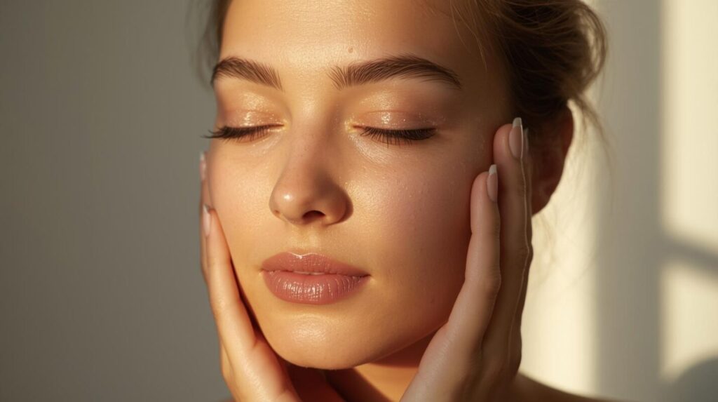 顔の中心から外側へ、首から鎖骨へと流すようにマッサージしましょう。クリームやオイルを使うと摩擦を防ぎ、リラックス効果も得られます。
