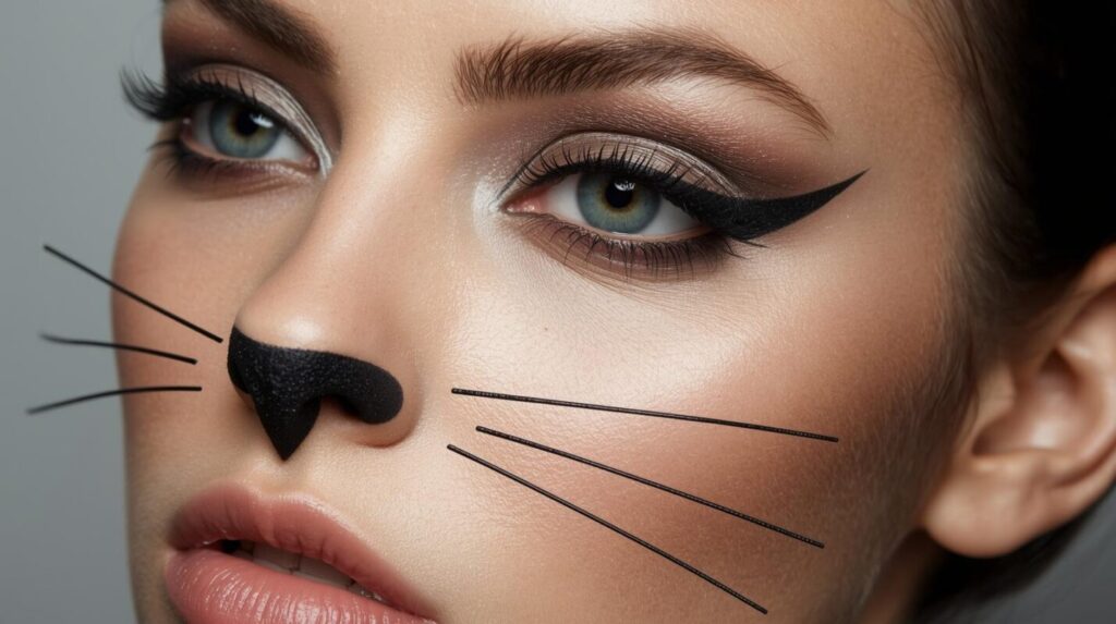 - 鼻・口元:ペンシルで黒猫風のヒゲを3本描くだけで一気に完成!