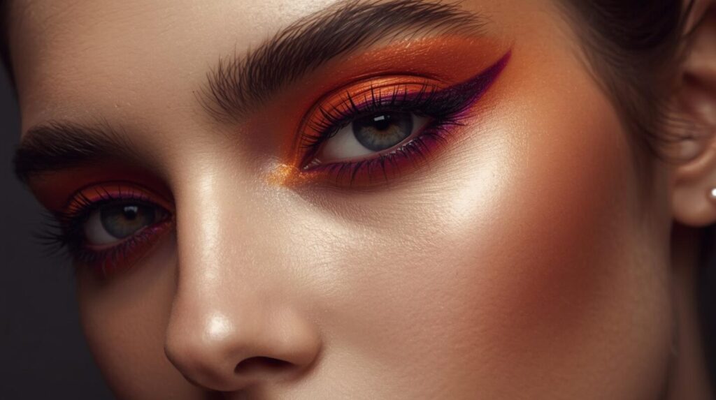 - ポイントカラー:目尻だけオレンジやパープルを入れる。